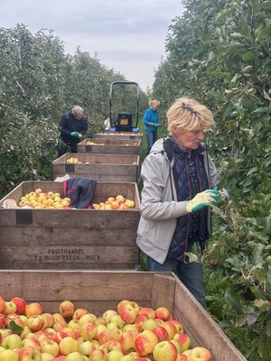 Mede door de prettige organisatie van Carolien van Eerde van De Zoetermeerse Uitdaging, die onze groep coördineerde, heeft ons team van 28 vrijwilligers liefst 7.500 kilo Elstar-appels geplukt bij teler Blijderveen in Ingen. Wel eerst even geproefd natuurlijk. Conclusie: beter kon een appel niet worden, mooi, groot, heerlijk sappig en fris zoetzuur. Bovendien hadden we het ondanks het wat miezerige weer enorm gezellig en maakten lol en dat met mensen die elkaar voor de eerste maal zagen.