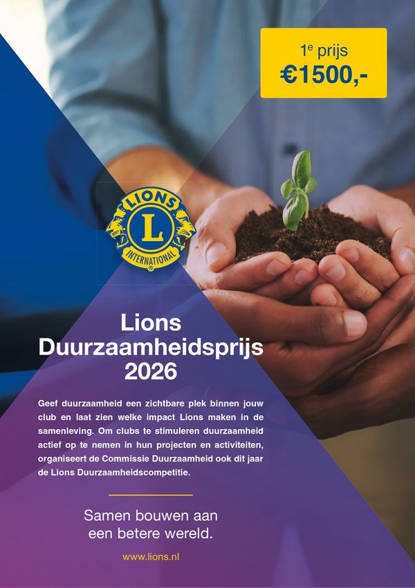 Om clubs te stimuleren Duurzaamheid ene plek te geven in hun activiteiten en dit ook te belonen loopt er op dit moment een Lions Duurzaamheidscompetitie.