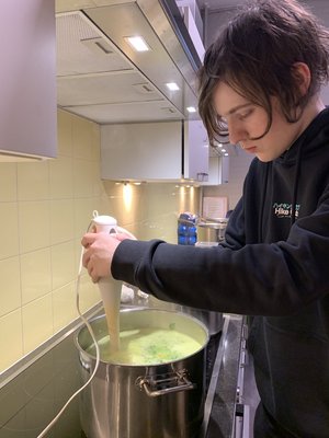 Jelle pureert de soep.